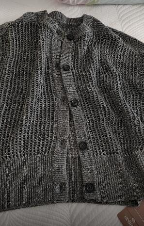 Crafted from 100% cashmere with sequin detailing, this deep gray knit cardigan adds both elegance and warmth to your wardrobe. The perfect piece for layering, it offers luxurious softness and a hint of sparkle, making it a versatile addition to any outfit. Ideal for casual or formal wear, this cardigan is a must-have for every season.